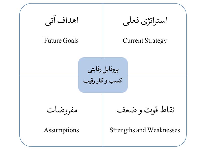 چهار حوزهی مورد توجه پورتر همان چیزی است که ما آن را تنظیم پروفایل رقابتی برای شرکتهای رقیب مینامیم (انگار که برای هر شرکت، یک شناسنامه تنظیم کردهایم):